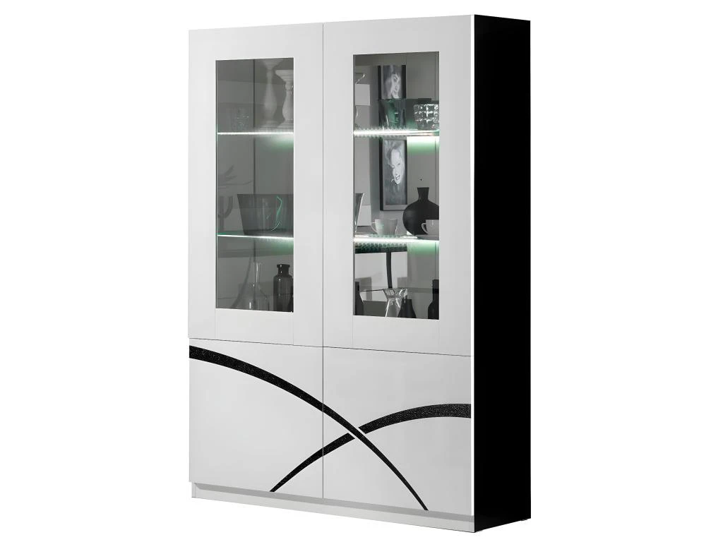 Vitrine 2 Portes Laquée Brillant Noir et Blanc de la gamme Alyssa.