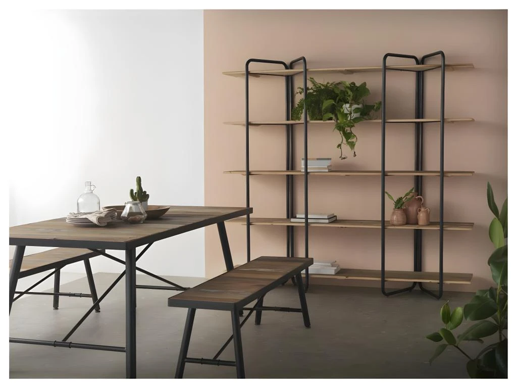 Mettez en scène une déco combinant le style mobilier Industriel et un design contemporain avec cette bibliothèque 5 étagères au look exclusif.