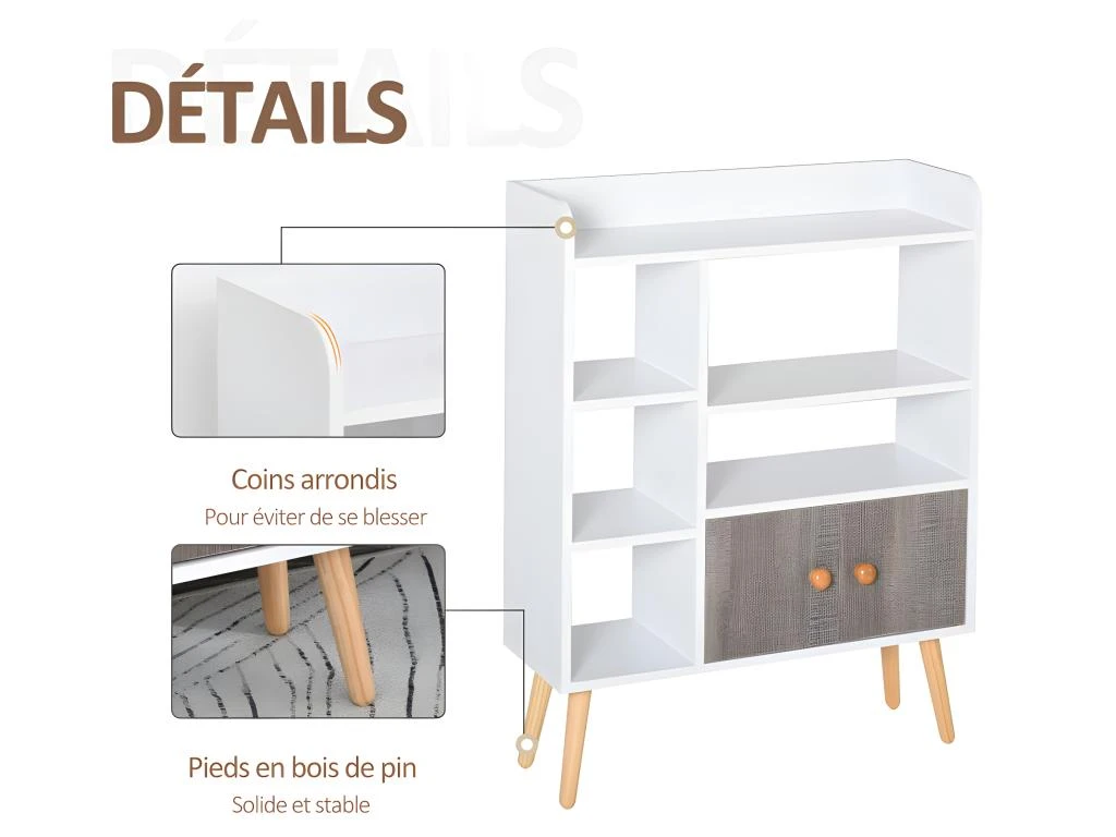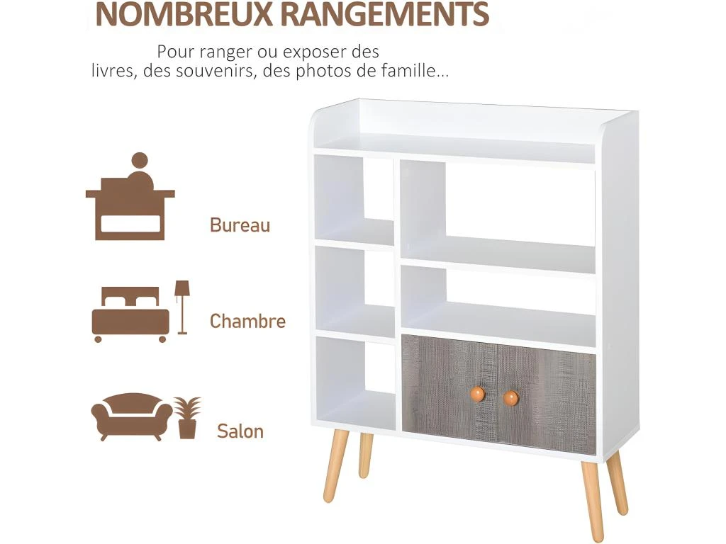 – Bibliothèque au design scandinave idéal pour ajouter une touche nordique chaleureuse à votre intérieur