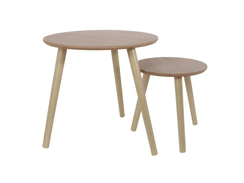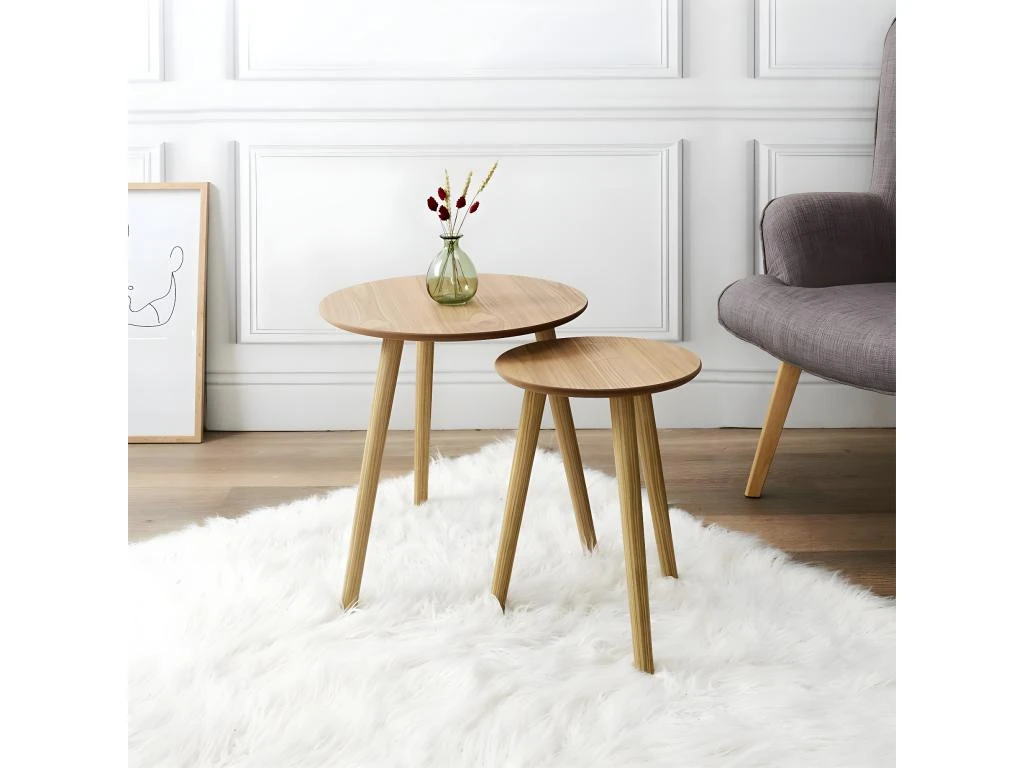 Lot de 2 Tables Gigognes Rondes Effet Bois Bruna.