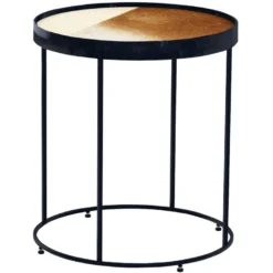 La base du plateau est habilement fabriquée à partir de contreplaqué de haute qualité, offrant une surface lisse et robuste à diverses fins. Son aspect naturel ajoute une touche de chaleur et d’élégance à votre décor, rehaussant l’esthétique globale de votre espace de vie. Il est doté d’un cadre en métal robuste qui offre un soutien et une stabilité fiables. Le cadre en métal ajoute non seulement une touche contemporaine, mais assure également sa durabilité, garantissant qu’il résiste à une utilisation quotidienne.
