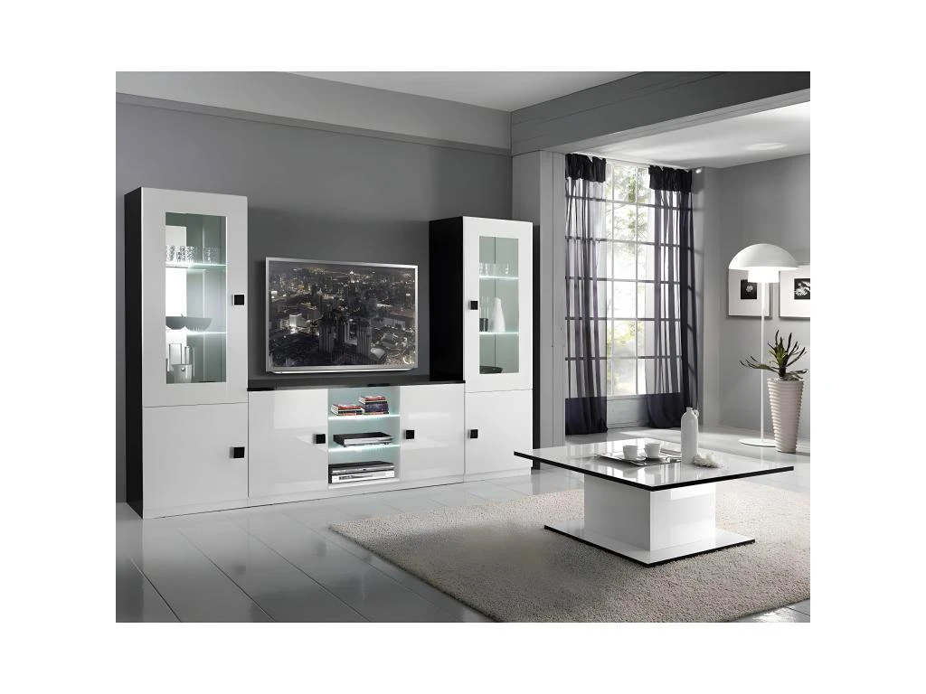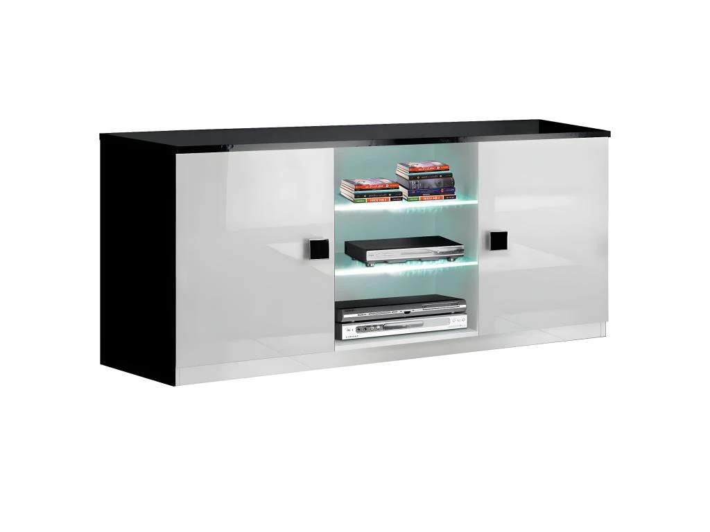 Meuble TV 2 Portes avec niche centrale Laqué Brillant Noir et Blanc de la gamme Columbus.
