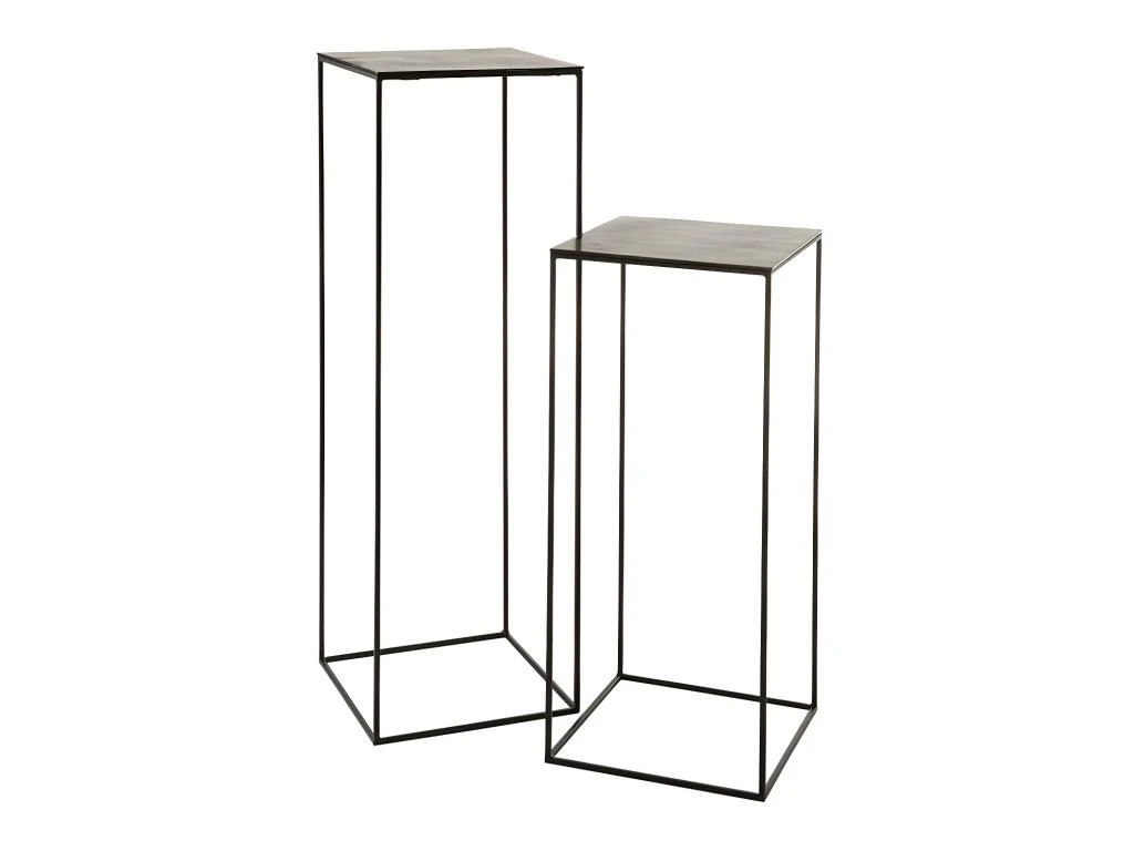 Totalement réalisées en métal noir patiné ces sellettes bénéficient d’une robustesse satisfaisante, d’une stabilité rassurante et d’un fort potentiel décoratif.