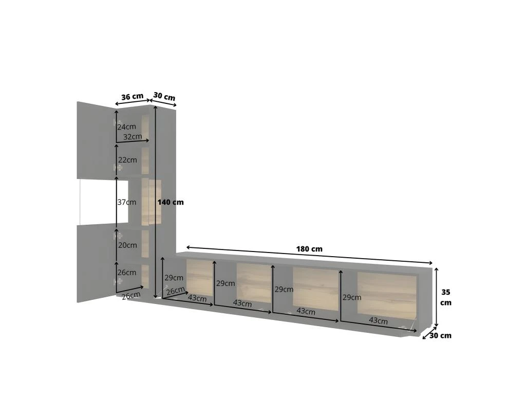 * Meuble TV : composé d’une grande porte abattante. Son large plateau et étagère vous permettront d’apposer votre télévision et vos plus beaux objets décoratifs.
