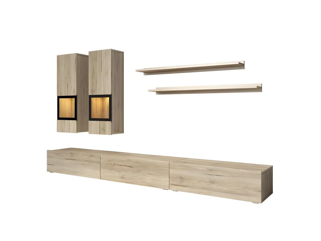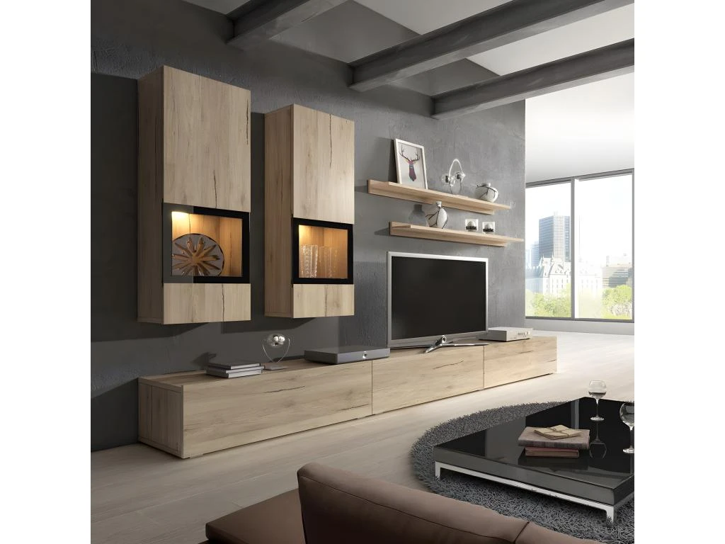 – COMPOSITION : un meuble TV XL, 2 vitrines suspendues et 2 étagères.