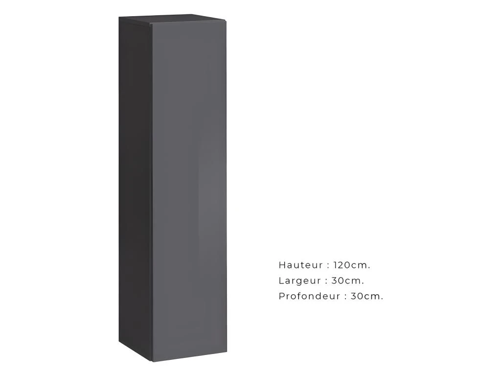 * Armoire colonne (x1) : Corps des meubles couleur gris mat. Façades grises brillantes