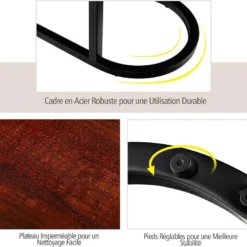 Table D’appoint Industrielle Avec étagère En Maille, Cadre En Acier Robuste, Marron Rustique