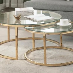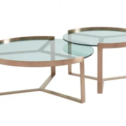 Tables Basses Gigognes En Verre Trempé Et Acier Inoxydable – Transparent Et Cuivré – BASERI