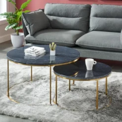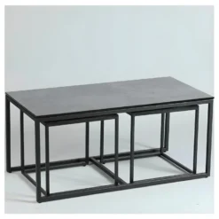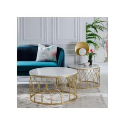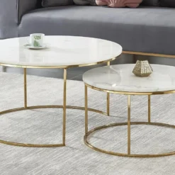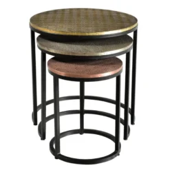 Tables Basses Gigognes CANDEUR – Motifs Sculptés – Acier – Coloris : Doré, Argent, Cuivre