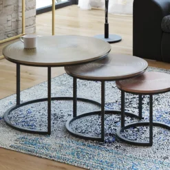 Tables Basses Gigognes BELAMI – Motifs Sculptés – Métal – Coloris : Doré, Argent, Cuivre