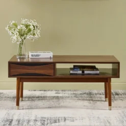 Vaisselier 1 Porte Battante 2 Tiroirs Chêne/Métal – SEATTLE – L 90 X L 40 X H 135 Cm