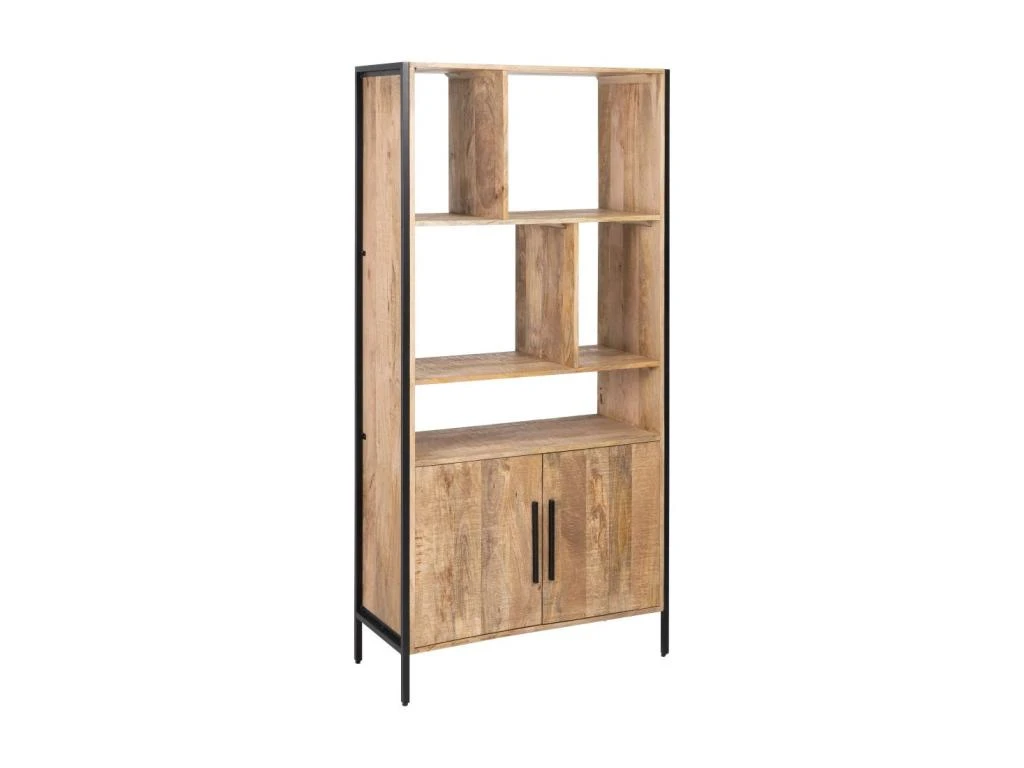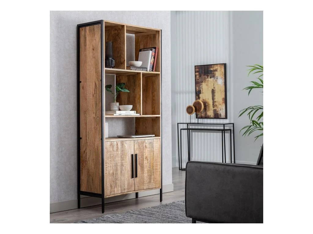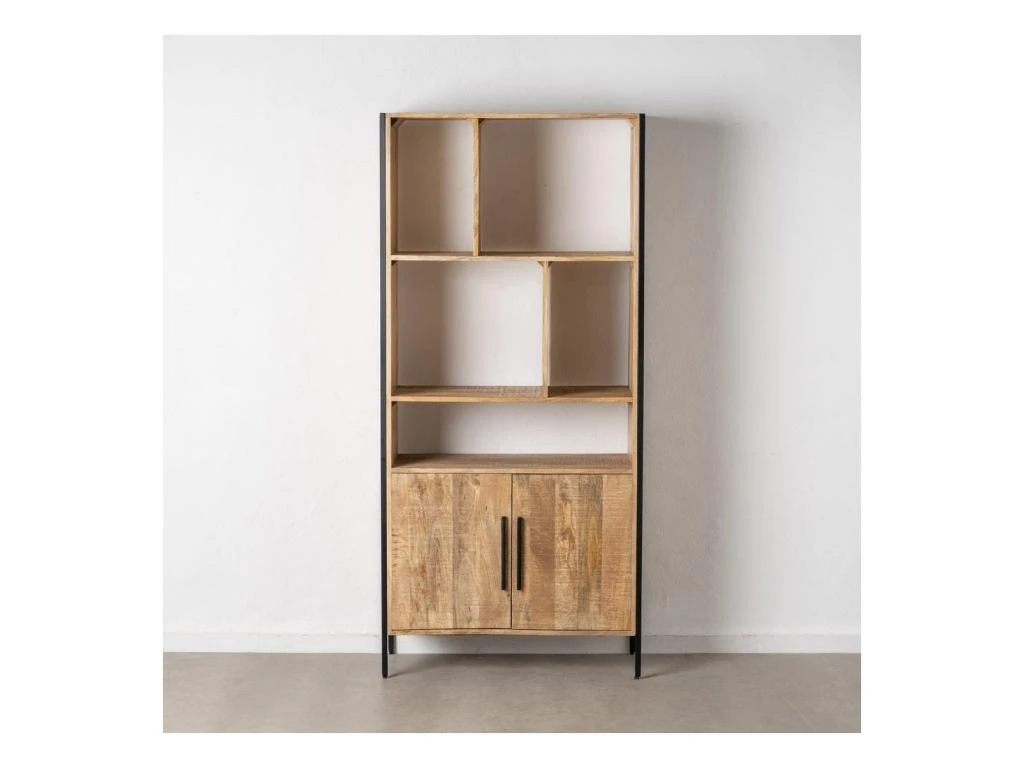 Modernisez sagement la déco de votre pièce avec cette étagère 5 niches 2 portes réalisée en bois de Manguier.