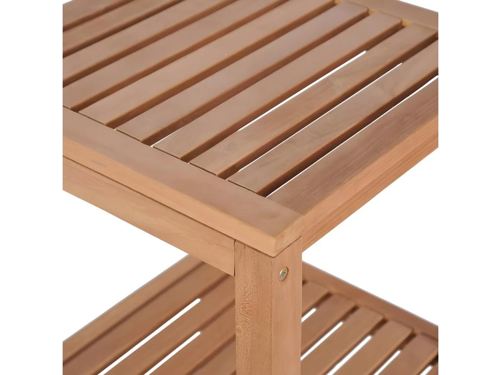 L’étagère de rangement est fabriquée en teck massif, ce qui garantit une stabilité et une durabilité excellentes.