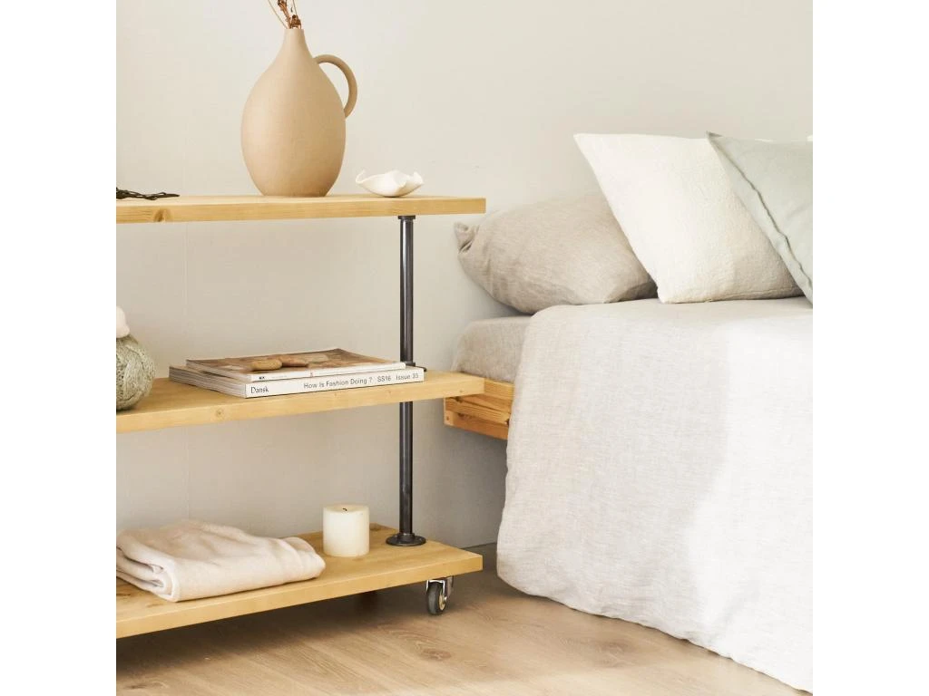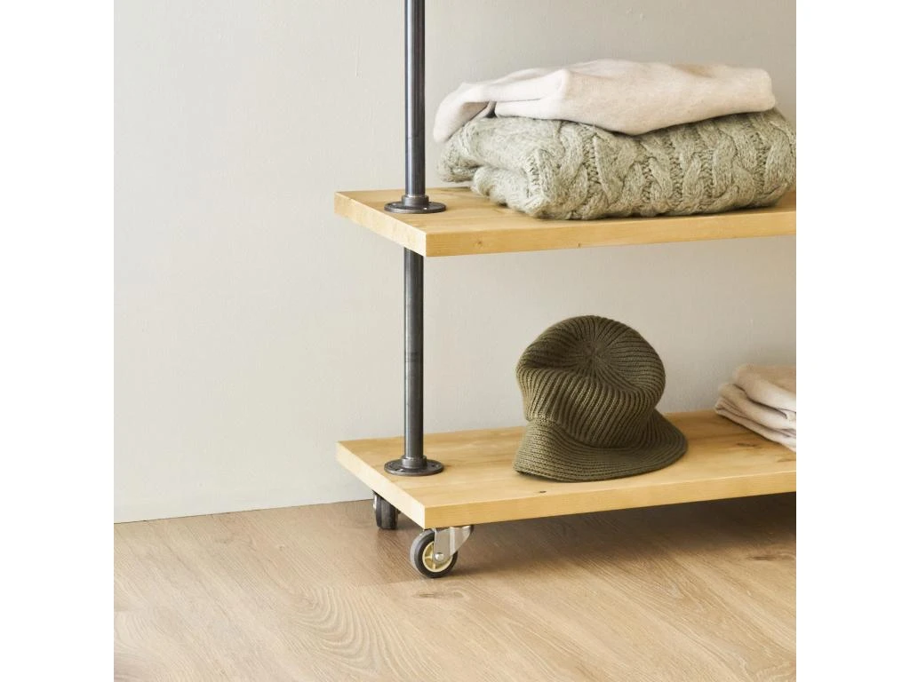 Dans la base vous trouverez des roues pour faciliter le déplacement et que vous pouvez faire de ce rack la version la plus fonctionnelle. Placez-le dans des espaces tels que le hall pour avoir tout à portée de main, dans des salles ou des loges pour en faire votre meilleur allié organisationnel.