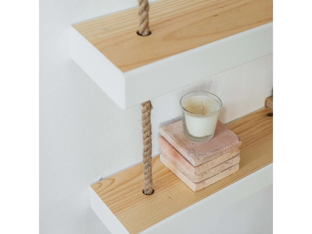 Étagère en bois de pin massif d’origine durable et corde de jute