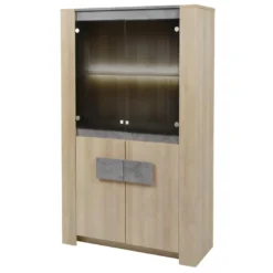 Vitrine 2 Portes Aspect Bois et Pierre + Eclairage Led de la gamme Fanny.