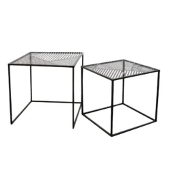 Un duo de tables métalliques qui apporteront une touche moderne à votre intérieur. Les deux tables sont sublimées par le motif ajouré présent sur les plateaux. Parfait pour une utilisation dans un salon.