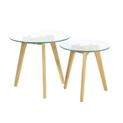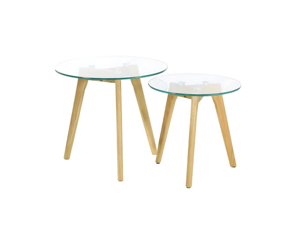 Lot de 2 Tables Gigognes Rondes Verre Trempé Glass.