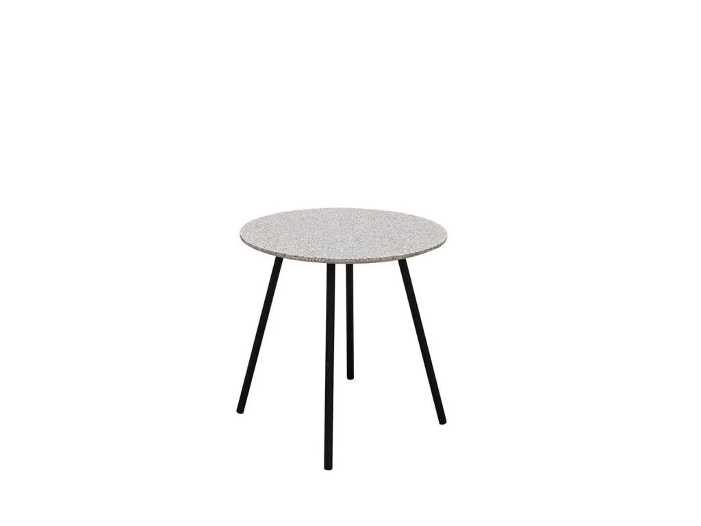 Piétement métallique coloris noir. Plateau en MDF, finition effet granit gris.