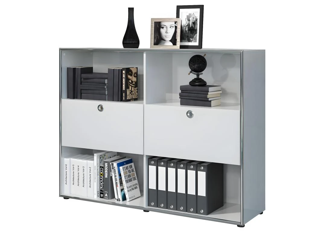 Infinity Vitrine, 2 volets, 4 compartiments ouverts, blanc brillant, chromé. Obtenez des meubles de bonne qualité, confortables, conçus dans un design élégant et moderne. Nos meubles sont vendus à des prix vraiment très attractifs et compétitifs. Créez un intérieur qui vous ressemble, en créant un style qui vous est propre grâce à de nouveaux meubles. Combinez vos meubles avec d’autres éléments et accessoires pour créer une athmosphère chic et à la mode. Soyez toujours au goût du jour en matière d’habitat, et suivez les dernières tendances telles que présentées dans les revues et les magazines. Chez nous, vous trouverez des modèles de meubles et de décoration d’intérieur absolument uniques, chics et ultra confortables. Tous nos meubles offrent un design tendance.