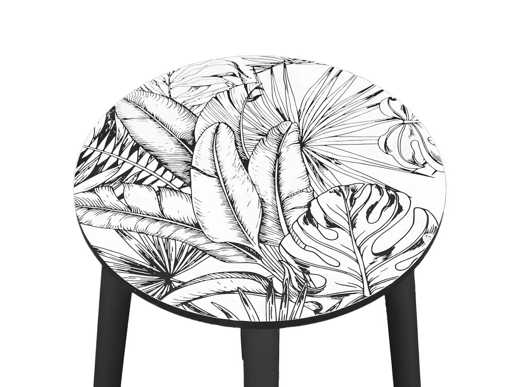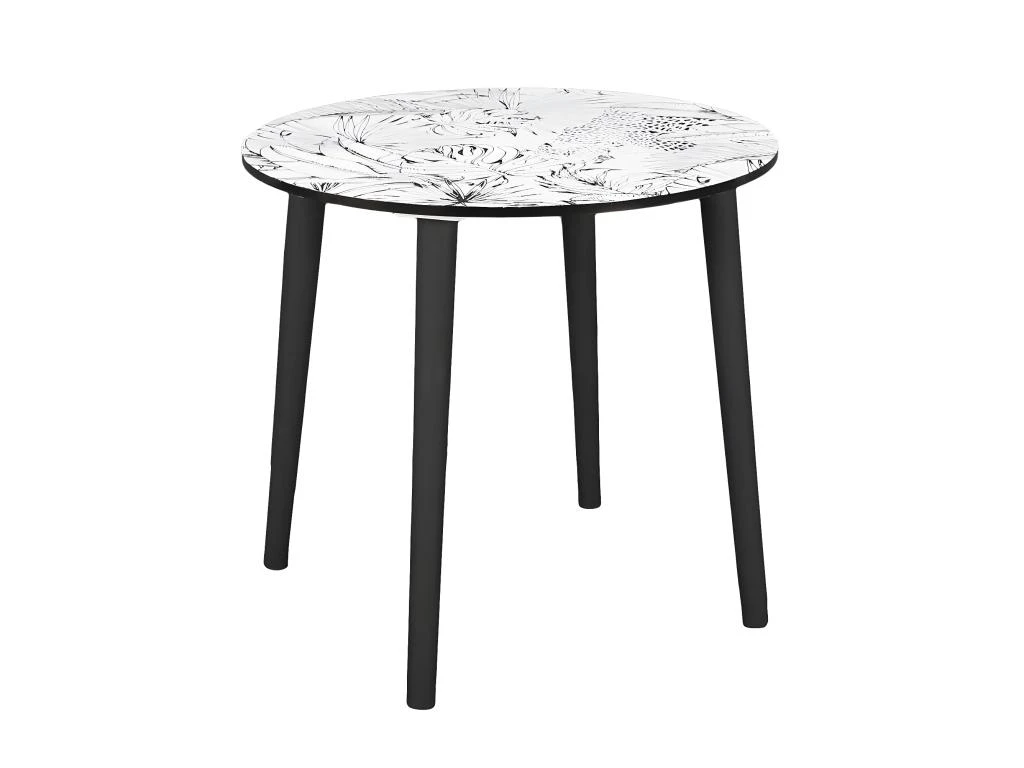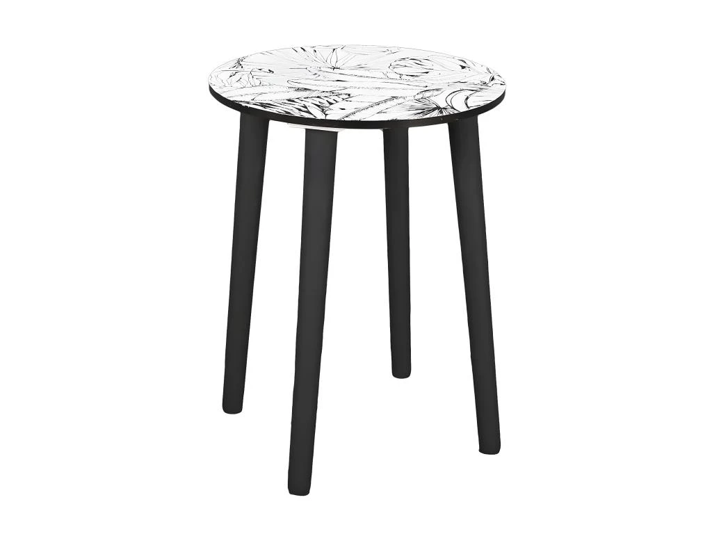Piétement en pin coloris noir. Plateau en MDF coloris blanc. Finition motif feuilles coloris noir sur le plateau.
