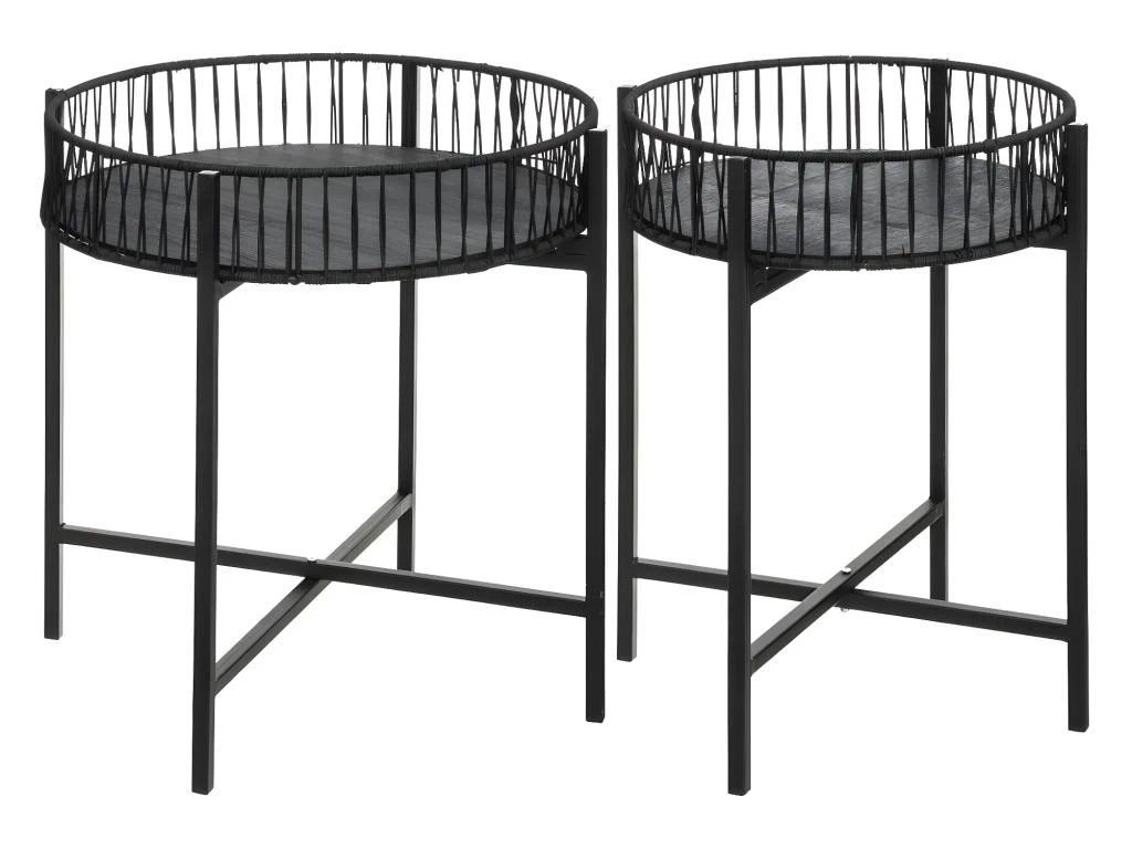 Lot de 2 Tables à café en métal et rotin H 56 cm (-) Détail Dimensions : S : L. 44 x l. 44 x H. 56 cm – M : L. 54 x l. 54 x H. 56 cm – Matière : Fer et Rotin – Poids Produit : 6.3 kg.