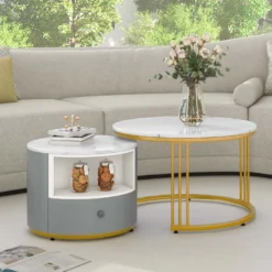 Produit pratique:L’ensemble des tables basses rondes modernes comprend 2 petites tables, vous pouvez les assembler facilement ou les utiliser séparément comme table d’appoint ou comme table de chevet.