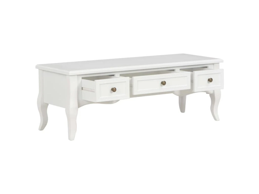 Ce meuble TV de style français est équipé de 3 tiroirs pour un grand espace de rangement.
