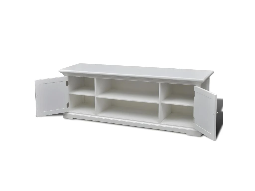 La large surface supérieure de ce meuble TV le rend idéal pour exposer un téléviseur plasma ou LCD à écran large autoportant.