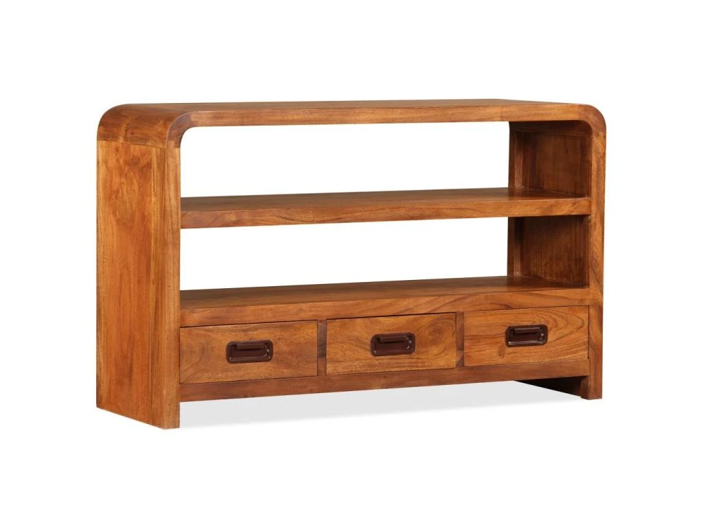 Cette armoire à plasma est fabriquée en bois d’acacia massif avec une finition en bois de Sesham.