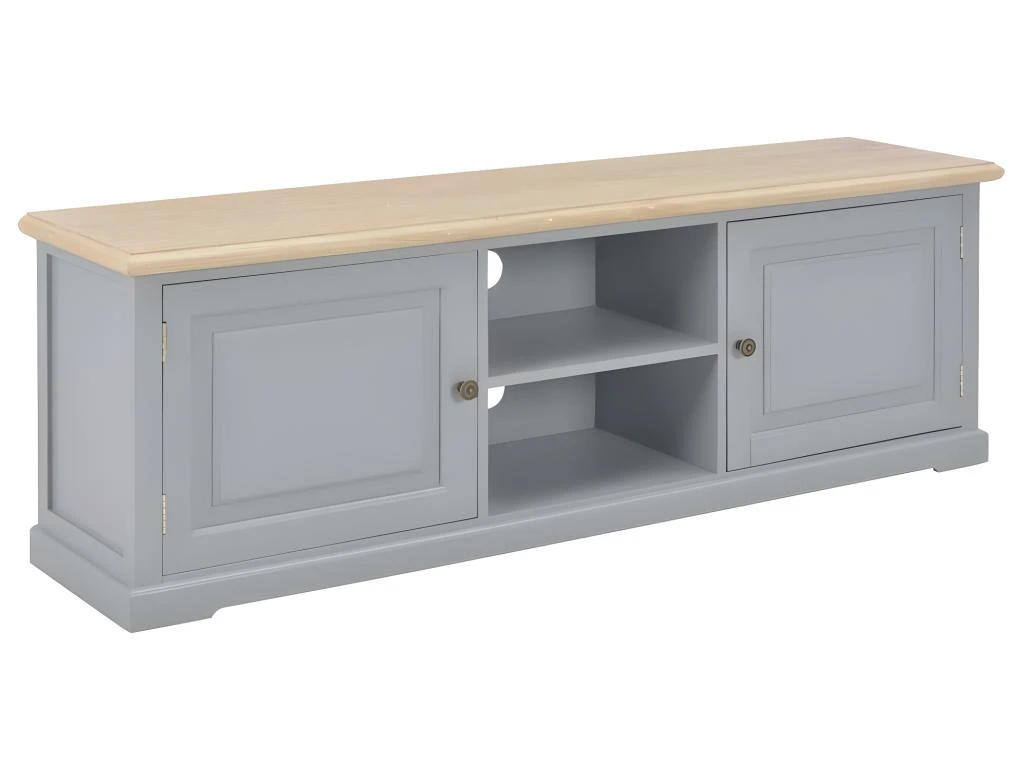 Fabriqué en MDF et en bois de Paulownia solide, ce meuble TV moderne comprend 2 portes et 2 compartiments ouverts permettant de garder divers objets tels que des appareils multimédia, des consoles de jeu, des magazines, etc.