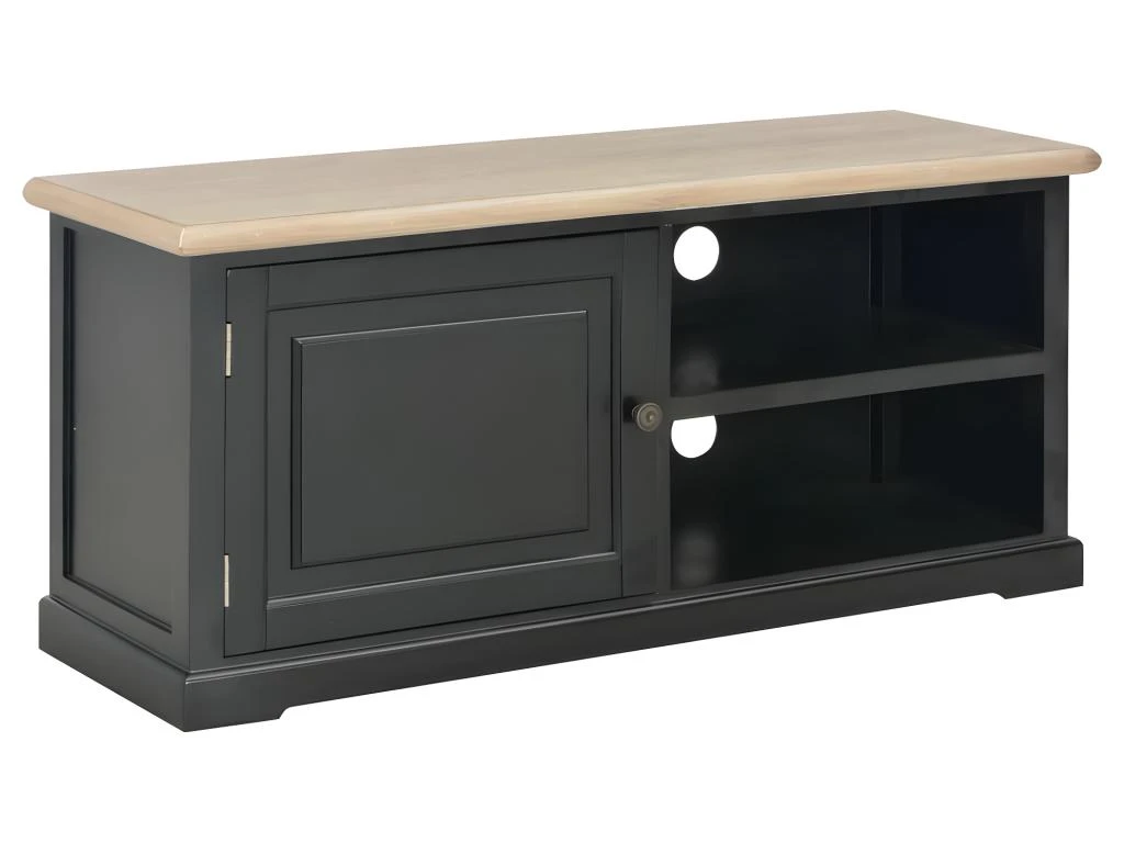 Fabriqué en MDF et en bois de Paulownia solide, ce meuble TV moderne comprend 1 porte et 2 compartiments ouverts permettant de garder divers objets tels que des appareils multimédia, des consoles de jeu, des magazines, etc.