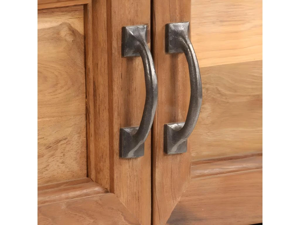 Le meuble TV est fabriqué en teck recyclé qui a reçu une belle finition par polissage et laquage pour lui donner un aspect raffiné.