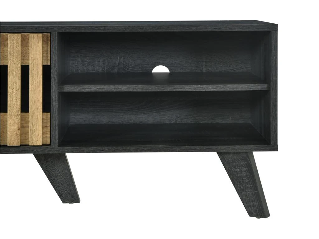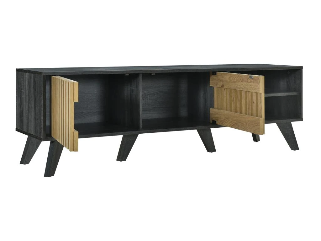 【Apparence élégante et unique】Avec ses portes en bois rainurées faites sur mesure et fabriquées à la main, l’élégant meuble TV devient le meuble le plus accrocheur de la pièce.