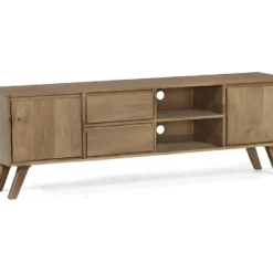 Succombez au charme du bois brut avec ce meuble de tĂ©lĂ©vision Classic composĂ© de 2 tiroirs, 2 portes et 2 niches. Ses deux tiroirs montĂ©s sur coulisses mĂ©tal et ses 2 deux portes disposent d’un systĂšme d’ouverture sans poignĂ©e pour un effet plus Ă©purĂ©. Les 2 niches sont percĂ©es chacune dans le fond pour permettre le passage discret des cĂąbles. Les portes se ferment grĂące Ă des aimants. EntiĂšrement fabriquĂ© en bois de haute qualitĂ©. LivrĂ© montĂ©. Dimensions : L. 180 x l. 40 x H. 60 cm. Poids : 43 kg. MatiĂšre : Bois de manguier.Â
