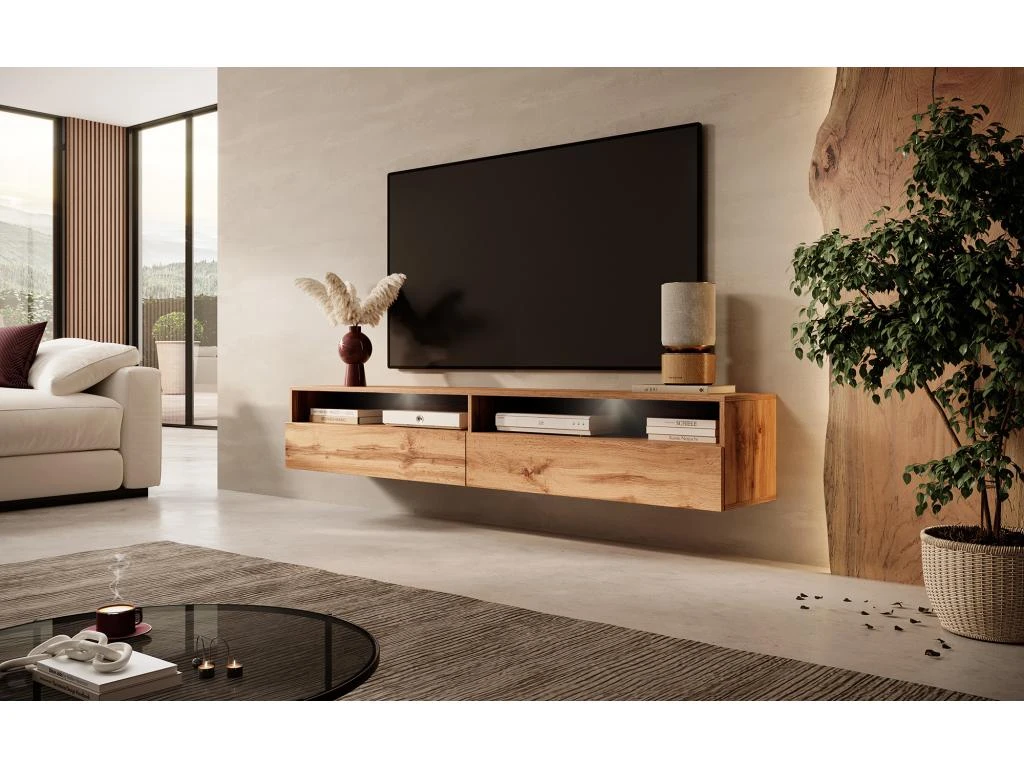 Rednaw est un meuble tv contemporain qui donnera une touche moderne à votre intérieur. Équipé de deux niches ouvertes et de deux compartiments fermés, ce meuble aux lignes minimalistes contiendra facilement tout votre équipement tv. Installé sur votre mur ou posé au sol, ce produit design métamorphosera votre salon. Dites au revoir à votre coin multimédia poussiéreux et permettez à l’harmonie d’entrer dans votre intérieur avec le meuble tv Rednaw !