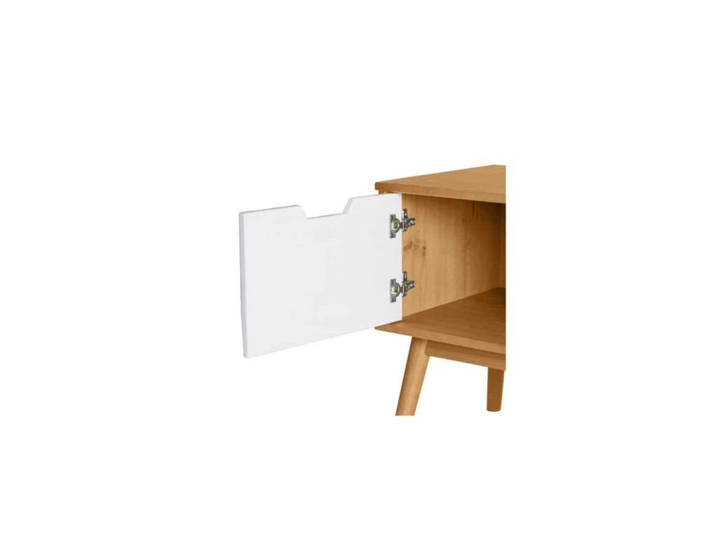 LuminositĂ© d’un bois teinte claire pour ce meuble TV 2 portes 2 niches parfait pour rĂ©aliser un salon tendance mobiliser Scandinave.