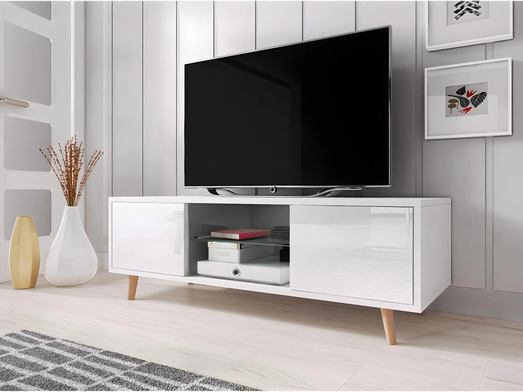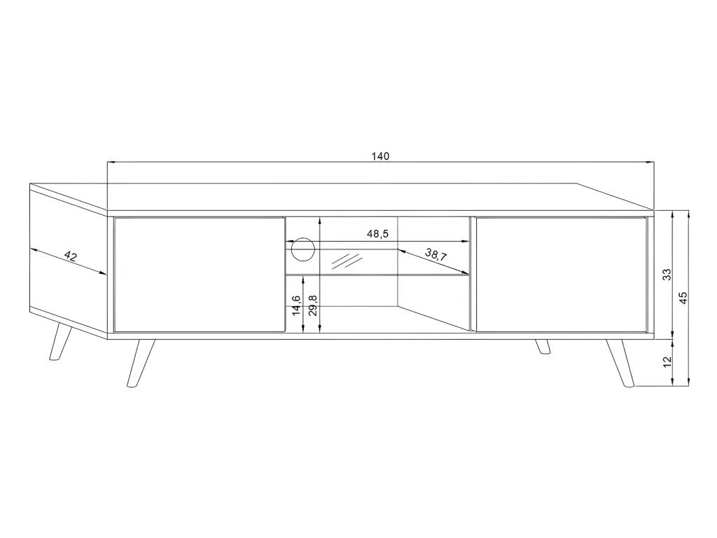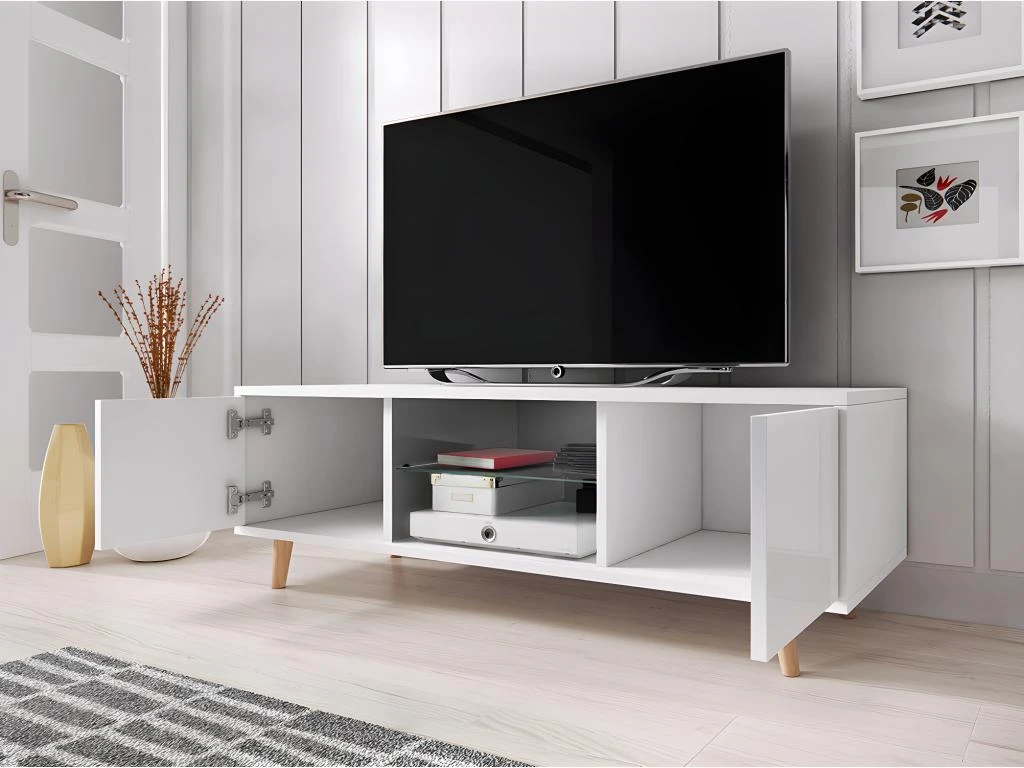 Caractéristiques: 2 portes avec ouverture vers le bas – 1 étagère en verre – 1 ouverture au dos pour le passage des câbles – Système d’ouverture « Push to open »