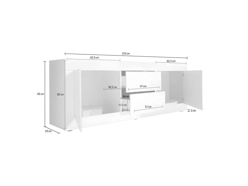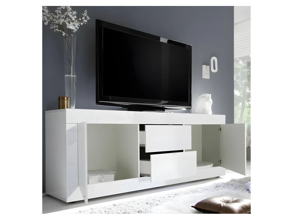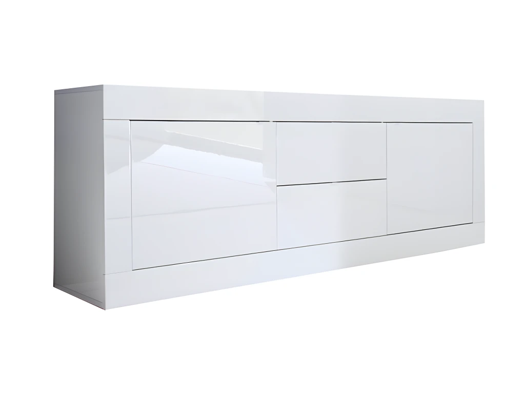 La véritable laque multi-couches proposée sur ce long meuble TV 2 portes 2 tiroirs apportera de la luminosité dans votre coin repas.