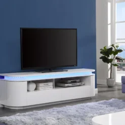 Avec ses multiples rangements est ses LEDs intégrées multicolores, la collection VANDANA vous fera profiter d’une optimisation de l’espace et apportera de la lumière à votre pièce. Son design très tendance, ses lignes epurées et sa facade en MDF laqué blanc donneront un coup d’éclat à votre intérieur !