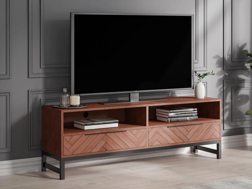 Le meuble TV VEDILA saura vous charmer pas son sublime bois d’acacia. L’effet chevronné de ce meuble TV apportera une dimension artistique unique à votre pièce, ajoutant une sensation de mouvement et de dynamisme à l’ensemble de votre décoration. Doté de plusieurs espaces de rangements, ce meuble TV vous permettra de garder votre séjour organisé en toute circonstance.
