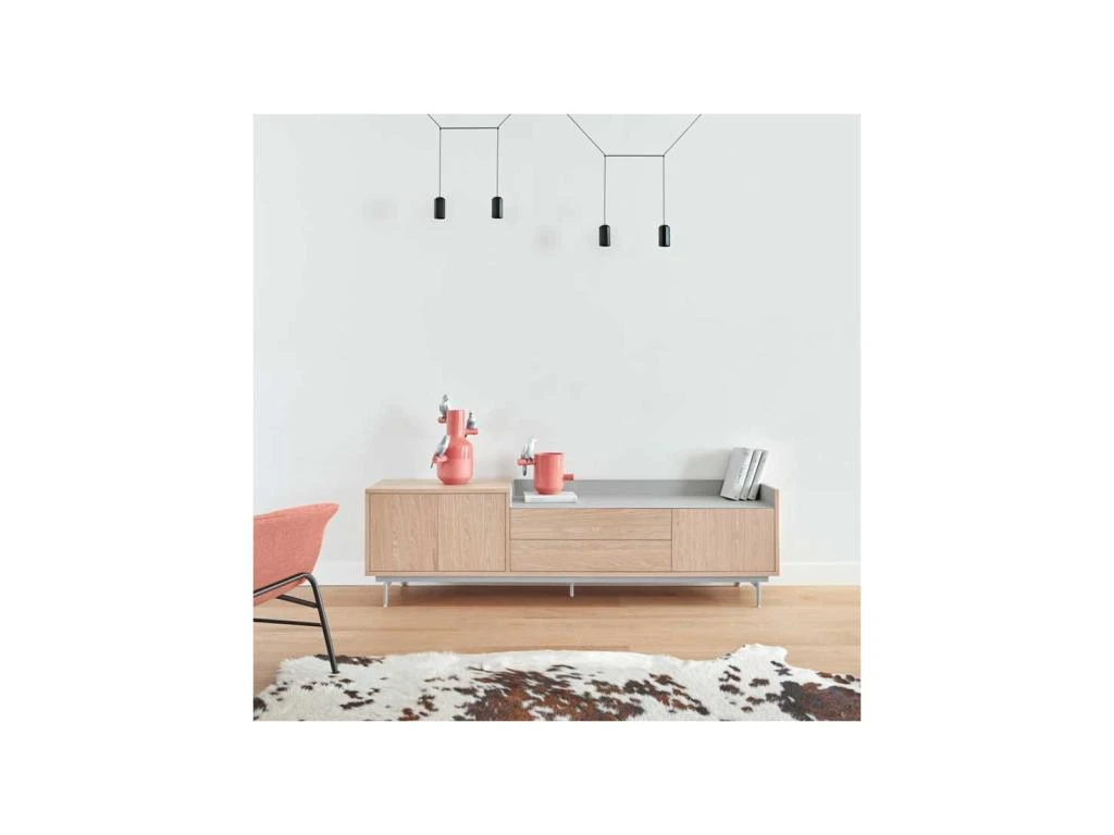 Mettez en scène un salon digne d’une revue de déco avec ce meuble TV 3 portes 2 tiroirs imaginé par un architecte designer de talent.
