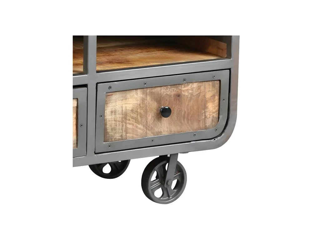 Finalisez la déco mobilier Industriel de votre salon avec ce long meuble TV au design exclusif.