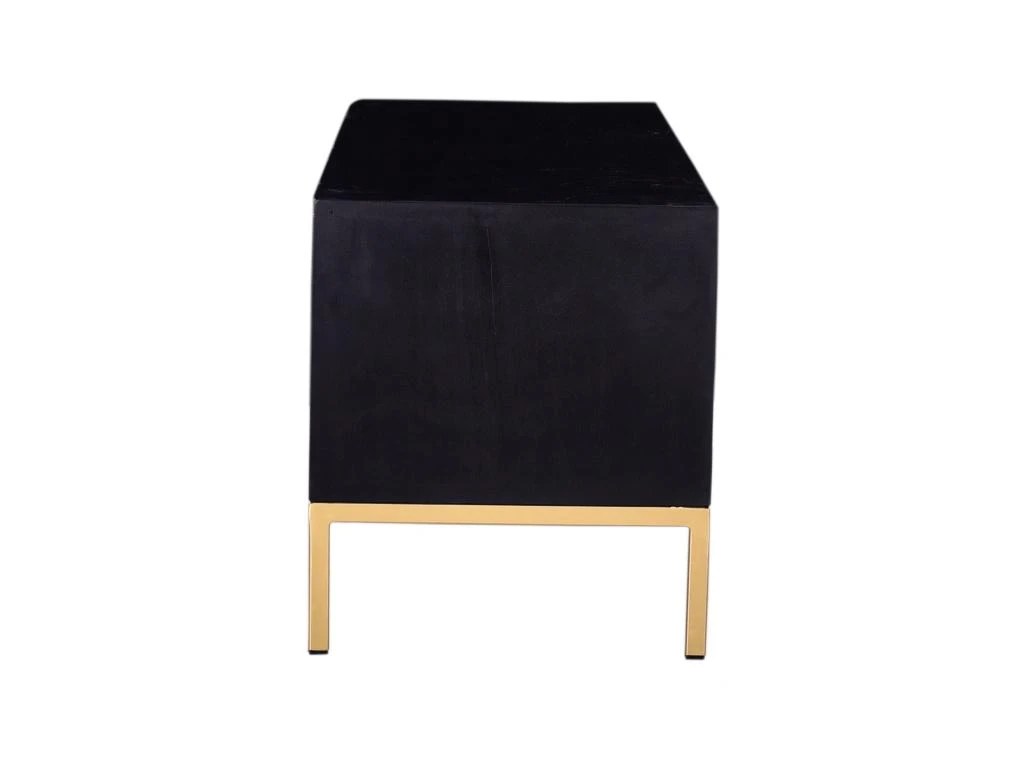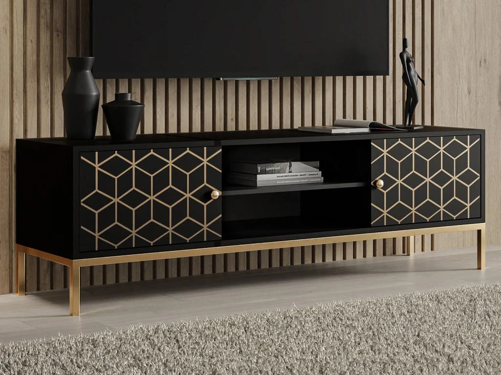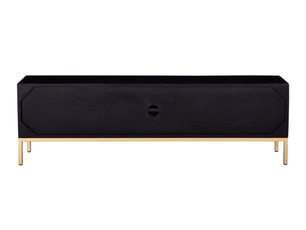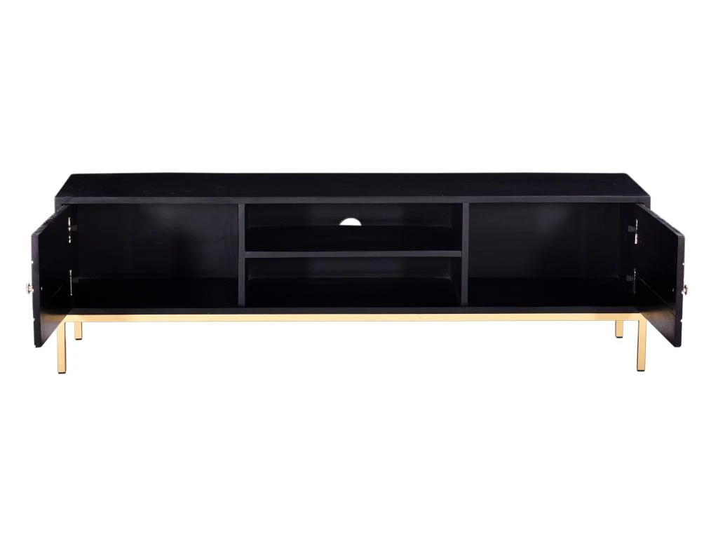 La collection ANALIMY offre une touche d’élégance à votre intérieur avec ses couleurs noire et dorée tout en vous proposant de multiples rangements pour organiser au mieux votre pièce. Le meuble TV ANALIMY est le meuble idéal pour apporter une ambiance chic à votre séjour. Derrière ses portes, des rangements sont à votre disposition ainsi qu’une étagère au centre, vous invitant à entreposer vos objets afin d’optimiser votre espace.