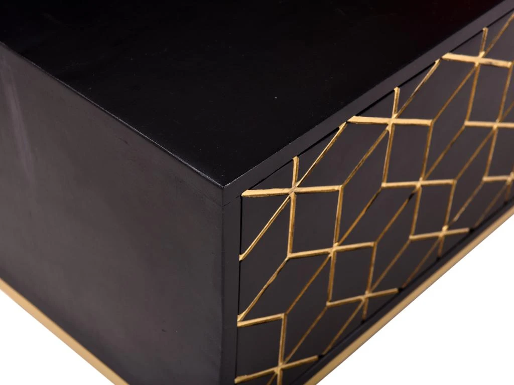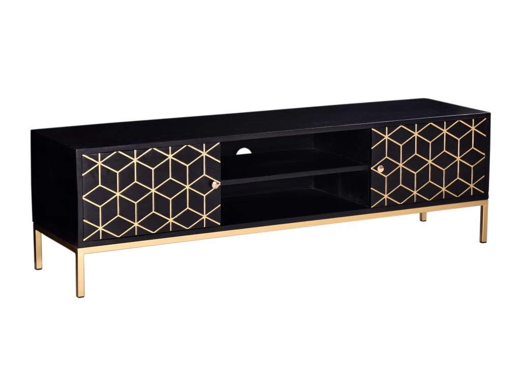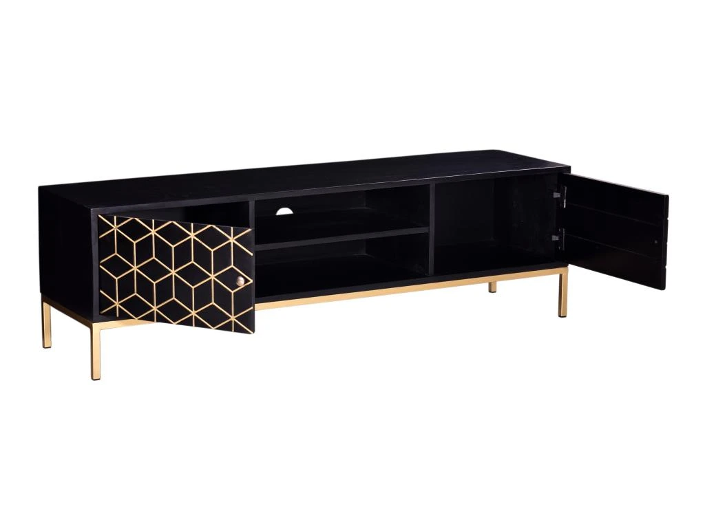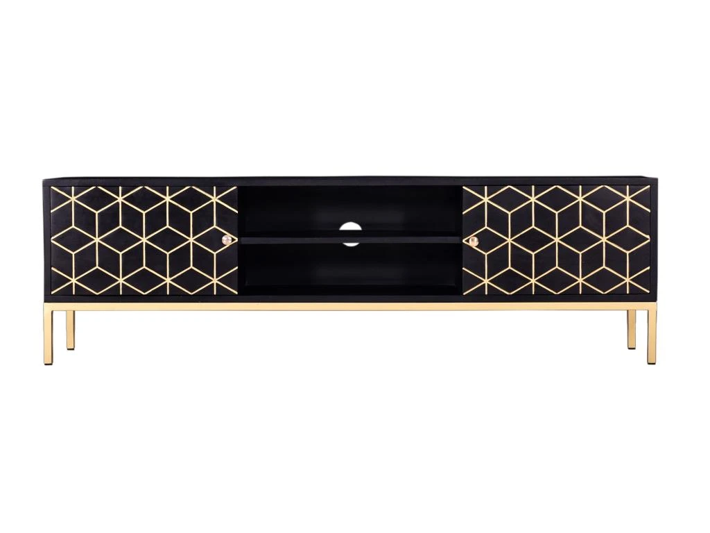 La collection ANALIMY offre une touche d’élégance à votre intérieur avec ses couleurs noire et dorée tout en vous proposant de multiples rangements pour organiser au mieux votre pièce. Le meuble TV ANALIMY est le meuble idéal pour apporter une ambiance chic à votre séjour. Derrière ses portes, des rangements sont à votre disposition ainsi qu’une étagère au centre, vous invitant à entreposer vos objets afin d’optimiser votre espace.
