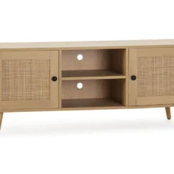 · Le meuble TV Bella est de couleur chêne avec des détails en métal noir. Une partie de son grand attrait réside dans le devant de ses portes, qui sont en rotin naturel, un détail qui fait de ce design une partie de la tendance intérieure qui se distingue par un style rustique et, en même temps, moderne.