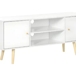 – Meuble TV bas sur pieds inclinés effilés style scandinave idéal pour ajouter une touche d’élégance supplémentaire à votre intérieur