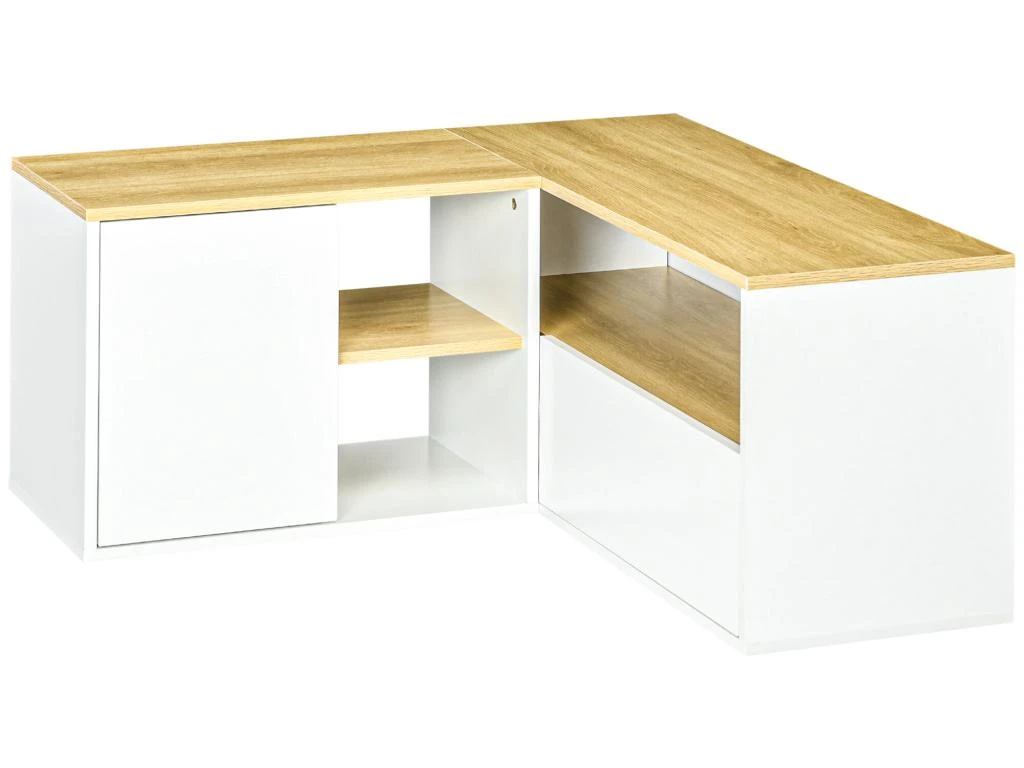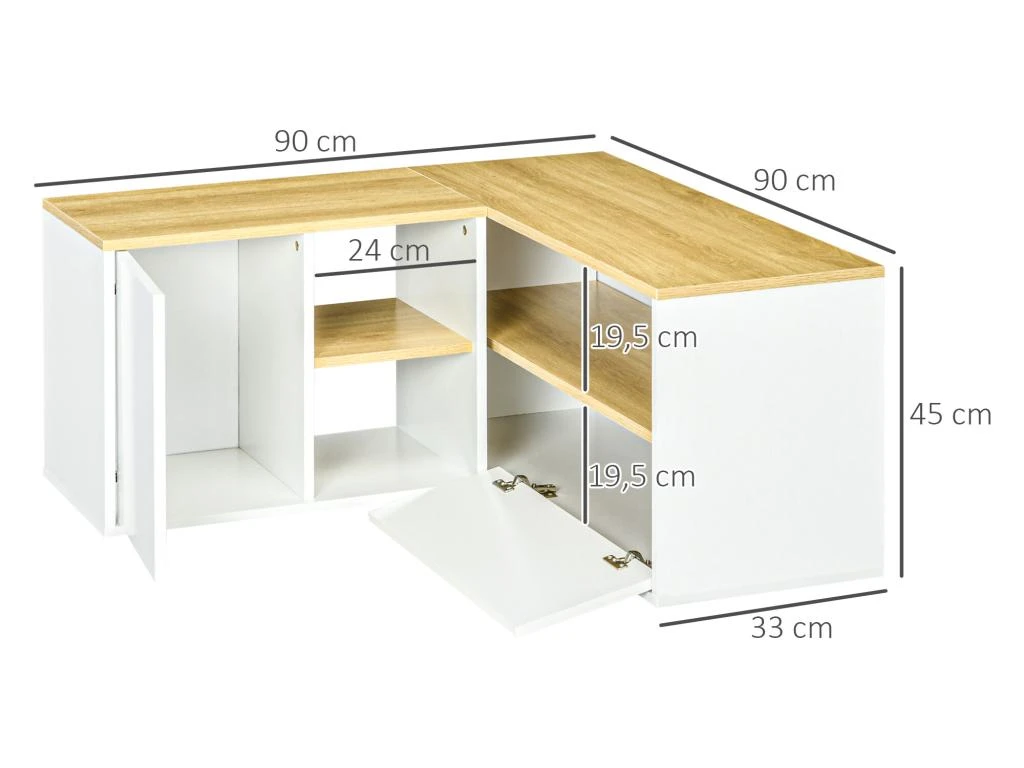 – Meuble TV d’angle au style épuré contemporain bicolore bois aspect chêne clair et blanc qui ajoutera une touche supplémentaire d’élégance et modernité à votre intérieur