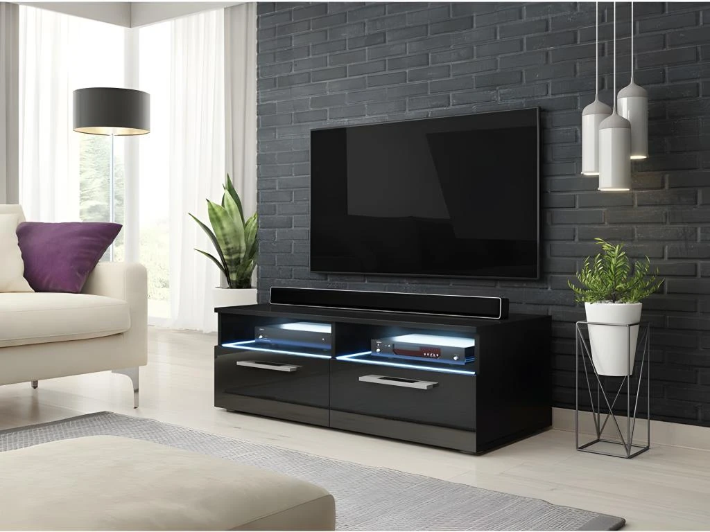– COMPOSITION : Meubles TV de 100cm. (2 portes et 2 niches avec Ă©clairage LED bleu)