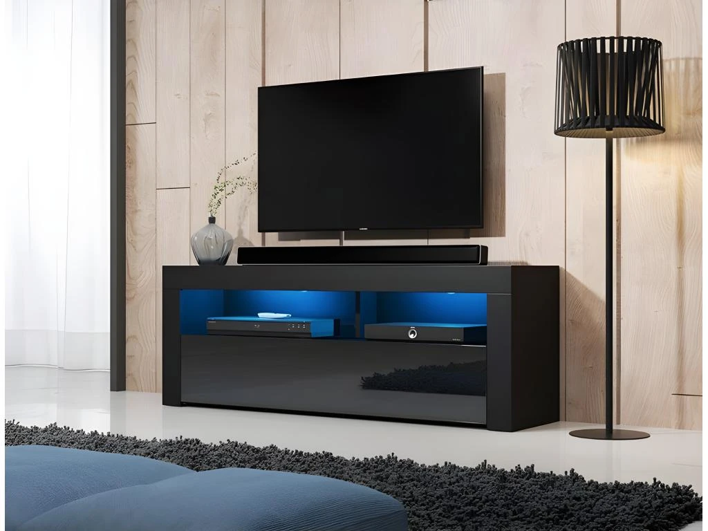 – COMPOSITION : Meubles TV de 140cm. (1 porte et une niche avec éclairage LED bleu)